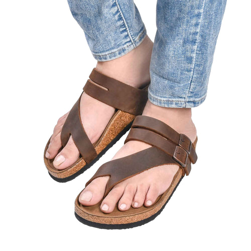 Brown Thong Leather Sandal with Cork